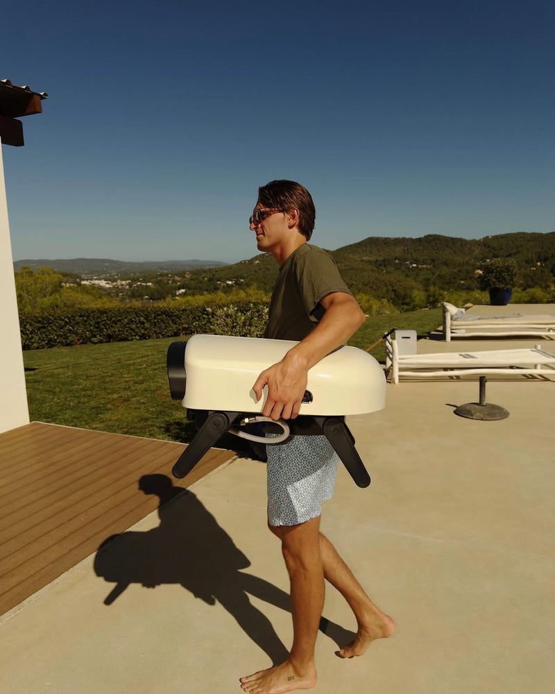Der Nero-14 wird mit einem Pizzastein, Gasleitung und -anschluss (bitte wählen Sie beim Bestellen den richtigen Anschluss) sowie der Bedienungsanleitung geliefert. Für den Betrieb des Nero-14 benötigen Sie lediglich eine Gasflasche.
